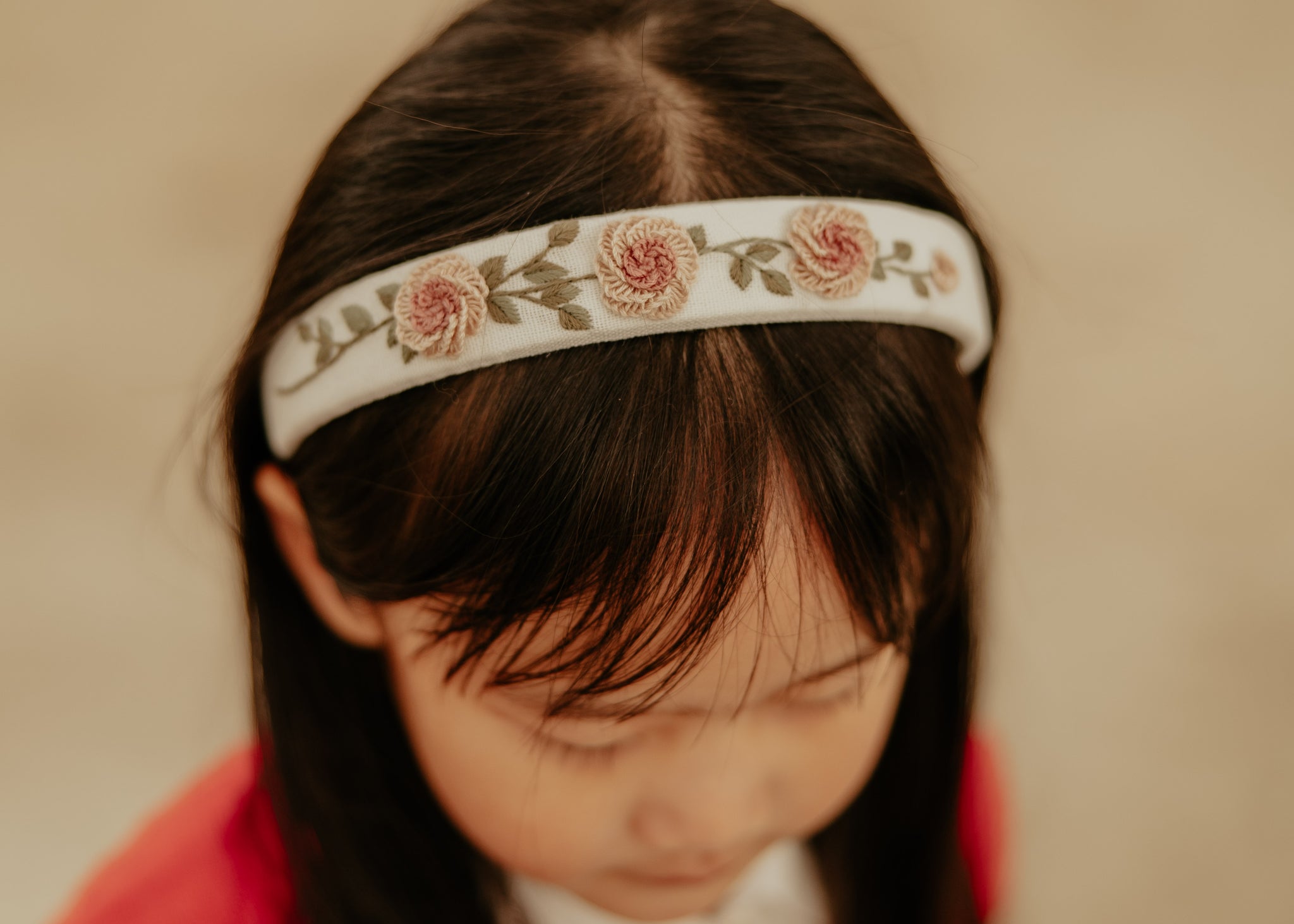 Pink Embroidered Rosette Headband